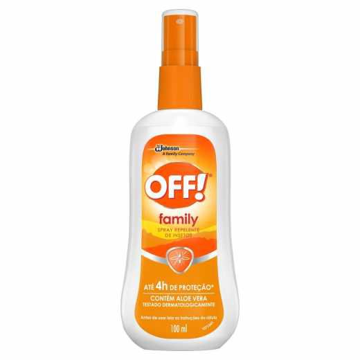 OFF! Family Spray foi especialmente formulado para repelir os mosquitos, pernilongos, borrachudos e muriçocas. Sua fórmula não é oleosa, deixando na pele uma sensação refrescante. Seu formato em Spray é muito fácil de usar, com aplicador 360º, que facilita a aplicação em todas as direções. Contém Aloe Vera, um hidratante natural que proporciona maciez e agradável fragrância. OFF! Spray possui DEET, tecnologia comprovada para afastar mosquitos e pernilongos. O uso do repelente pessoal OFF! traz proteção contra os insetos, deixando você com uma sensação de liberdade, de poder curtir a vida ao ar livre, sem o risco de ser picado por mosquitos, pernilongos, muriçocas e borrachudos. Além disso, ajuda a evitar alergias cutâneas causadas pelas picadas dos mosquitos, além de proteção contra outras doenças que eles podem trazer. Modo de uso: Aplique OFF! Spray sobre sua pele, pressionando o aplicador a uma distância de cerca de 15 cm da área que desejar proteger. Massageie a área até que o líquido desapareça. Para aplicar na face: aplique primeiramente o produto nas mãos e a seguir leve ao rosto evitando o contato com olhos, boca e narinas. Aplique em pequenas quantidades em torno das orelhas. Depois do uso, lavar as mãos com água e sabão. A pessoa ficará protegida por 2 horas devendo após este período reaplicar o produto, obedecendo o limite de somente 3 aplicações diárias. Não aplique o produto excessivamente. Aplicar nas áreas expostas somente quando necessário. Precauções: A aplicação deste produto em crianças deve ser supervisionada por um adulto. Este deve colocar o produto em suas mãos e em seguida aplicar na criança. Evitar a aplicação do repelente na palma das mãos da criança.Não aplicar por baixo de roupas. Lave as roupas tratadas antes de utilizá-las novamente. Evitar o contato com os olhos, boca e narinas.Mantenha o produto em sua embalagem original. Não reutilize a embalagem vazia. CUIDADO: Causa irritação moderada nos olhos. Não utilizar se a pele estiver irritada, lesionada ou queimada do sol. O uso deste produto pode causar reações na pele em casos raros. OFF! Spray não deve ser usado por pessoas alérgicas ou com problemas de pele. Não ingerir. Antes de usar pela primeira vez, teste OFF! Spray aplicando uma pequena quantidade na parte anterior do antebraço, observando por pelo menos 12 horas. Em caso de irritação cutânea, lave a pele com água e sabão e não use o produto. Lave as mãos abundantemente após o uso. Não usar em crianças abaixo de 2 anos de idade. Em crianças de 2 a 12 anos de idade não aplicar mais do que 3 vezes ao dia. A pessoa ficará protegida por 2 horas devendo após este período reaplicar o produto, obedecendo o limite de somente 3 aplicações diárias. Evite uso prolongado! MANTENHA FORA DO ALCANCE DE CRIANÇAS E ANIMAIS DOMÉSTICOS.