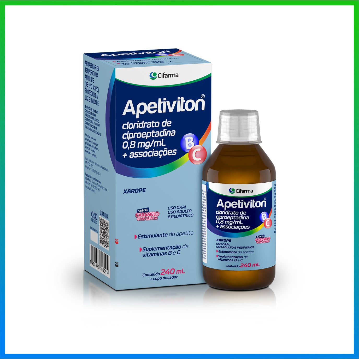 O cloridrato de ciproeptadina reduz a atividade das substâncias: histamina, serotonina e acetilcolina, provocando aumento do apetite. Também apresenta leves propriedades depressoras centrais. Apetiviton BC Xarope Grb 240ml age na reposição de vitaminas melhorando o funcionamento do organismo e regulando as manifestações clínicas já existentes devido a carência destas vitaminas. Sendo o cloridrato de ciproeptadina uma substância anticolinérgica, apesar de esse efeito ser mínimo na posologia recomendada, o produto é contraindicado na presença de glaucoma do ângulo fechado ou aberto, predisposição à retenção urinária e nos pacientes portadores de úlcera péptica estenosante ou obstrução piloro-duodenal, hipertrofia prostática (crescimento de um tumor benigno na próstata) ou, obstrução do colo vesical (colo da bexiga ), doenças do sistema cardiovascular, hipertensão (aumento da pressão arterial), hipertireoidismo (aumento do funcionamento da tireoide) e constipação crônica idiopática (prisão de ventre).