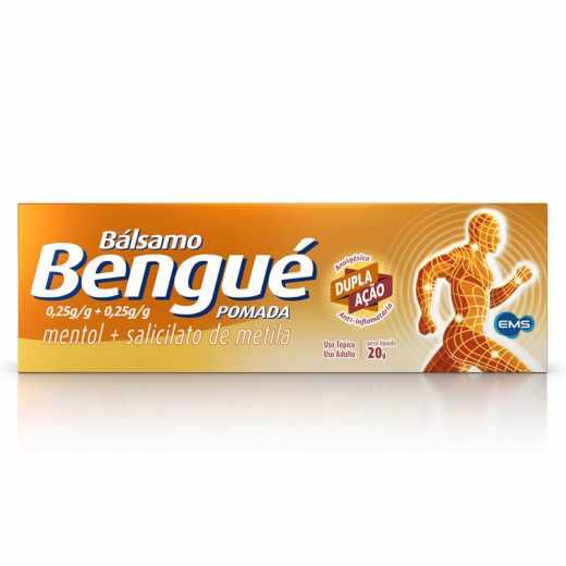 O que é: Bálsamo Bengué contém duas substâncias ativas: mentol e o salicilato de metila. O mentol, quando aplicado na pele, dilata os vasos sanguíneos, causando a sensação de frio e, em seguida, efeito analgésico. O salicilato de metila, quando aplicado na pele, tem ação irritante e rubefaciente (vermelhidão na pele), além das ações analgésica (alívio da dor) e anti-inflamatória características dos salicilatos.