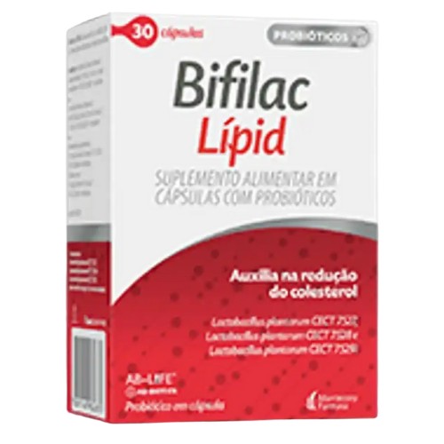 Bifilac Lípid é um suplemento alimentar em cápsulas, indicado para adultos, formulado à base de probióticos que auxiliam na redução do colesterol.