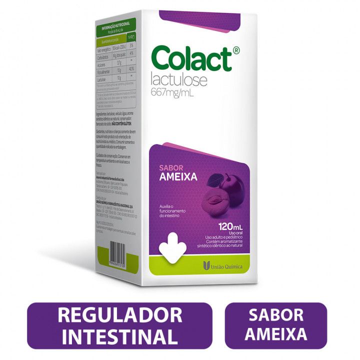 Colact Ameixa Solução Oral Lactulose 120mL - Colact é um laxante indicado para normalizar o trânsito intestinal, seu efeito laxativo é suave, não induz ao hábito e pode ser usado por período prolongado - A lactulose não é um medicamento laxante e sim um agente fisiológico, que proporciona evacuação regular.