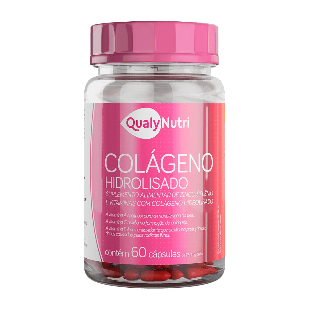 Colágeno Hidrolisado Qualy Nutri c/60 Cápsulas - Melhora a elasticidade da pele e fortalece unhas e cabelos - Previne o aparecimento de celulites e estrias. C/ 60 cápsulas.
