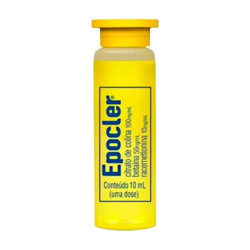Indicações: Epocler é um produto composto por 3 aminoácidos: racemetionina, colina e betaína. Indicado no tratamento dos distúrbios metabólicos hepáticos. Age principalmente sobre o fígado evitando o acúmulo de gordura nesse órgão e auxiliando na remoção de restos metabólicos e outras toxinas. Previne a infiltração (entrada) de gordura no fígado. Início de ação: cerca de 1 hora após a ingestão.