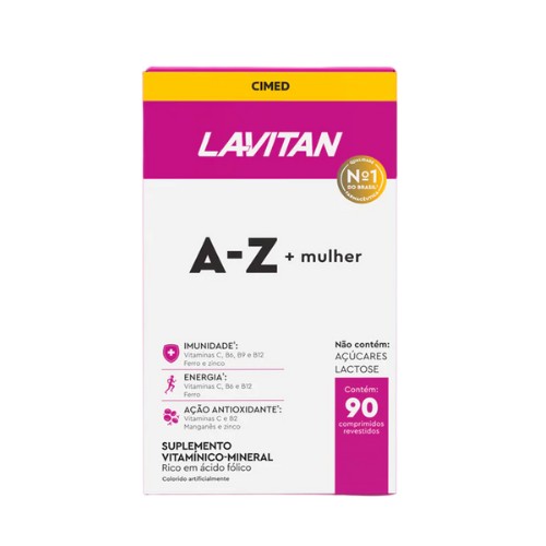 O Lavitan AZ Mulher é um suplemento multivitamínico desenvolvido para mulheres. Sua fórmula é rica em ferro e ácido fólico, contando com 10 vitaminas e 3 minerais. É uma opção prática para complementar a ingestão diária de nutrientes essenciais, contribuindo para o bem-estar no dia a dia.
