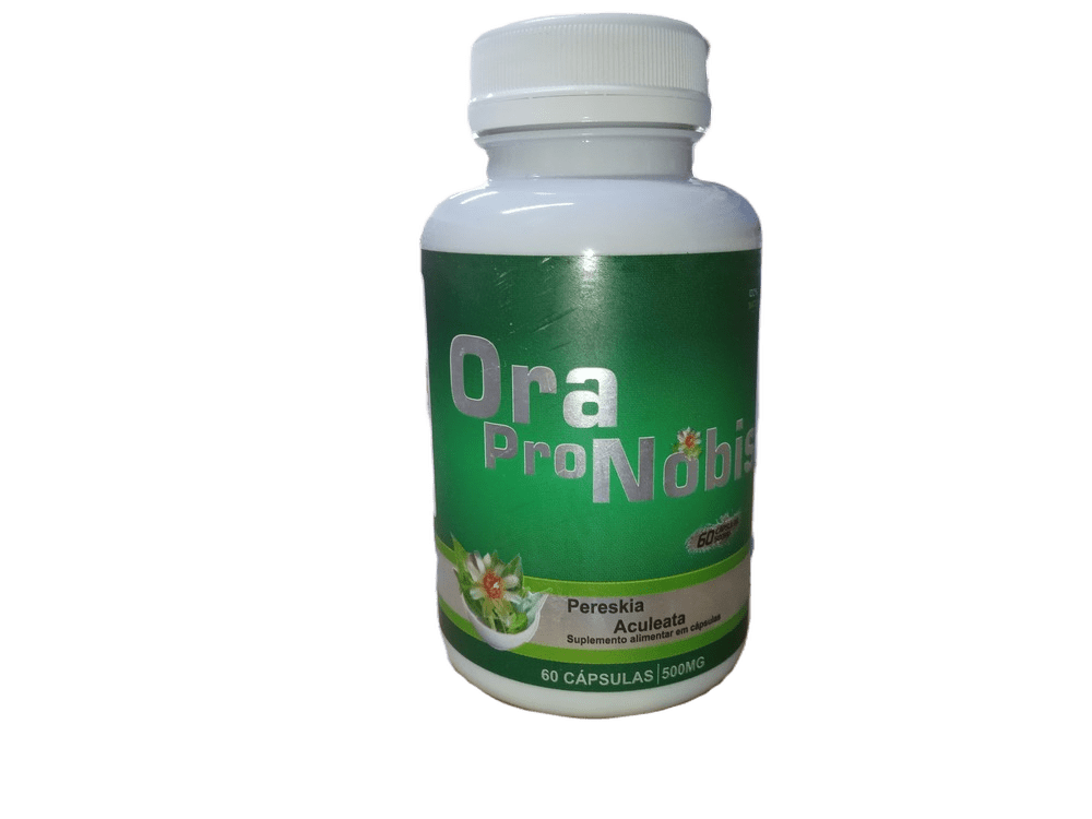 A Ora - Pro - Nóbis é uma planta mais comumente encontrada em Minas Gerais com alto teor de proteínas e fibras, além de muitos outros nutrientes e por isso muito usada por veganos e vegetarianos.O seu nome científico é Pe-re-skia A-cu-e-la-ta , comumente chamada de “Ora - Pro - Nóbis “ que significa “ Ora - Por - Nós” em referência a algum mineiros que colhiam a planta no quintal da igreja e se referia a essa frase que sempre ouviam o padre falar no horário da missa.IndicaçõesSuplemento Alimentar Vegano de Ora - Pro - NóbisAjuda na saúde Intestinal devido a presença de fibrasPotencial Antioxidante com Compostos Fenólicos e Vitamina C, AFortalece o Sistema ImunológicoPresença de Cálcio e Ferro, fortalece Ossos e Dentes