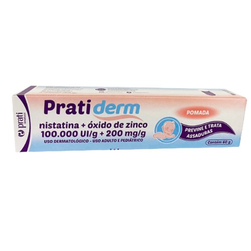 Cuide da pele sensível do seu bebê com a eficácia da Pomada Pratiderm , formulada com Nistatina e Óxido de Zinco. Indicada para a prevenção e tratamento de assaduras, Pratiderm age formando uma camada protetora que mantém a pele protegida contra a umidade e irritações. Além disso, possui ação antifúngica graças à nistatina, proporcionando alívio rápido e proteção contínua para o seu bebê. Com textura suave e fácil de aplicar, a pomada de 60g é ideal para uso diário, garantindo cuidados especiais a cada troca de fralda. Mantenha a pele do seu bebê sempre saudável e confortavelmente protegida com Pratiderm !