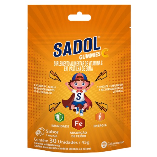 Sadol Vitamina C Gummies Laranja é um suplemento alimentar de vitamina C em pastilhas de goma, desenvolvido para complementar a alimentação de forma prática e saborosa. Auxilia na absorção de ferro dos alimentos, no funcionamento do sistema imunológico e no metabolismo energético.